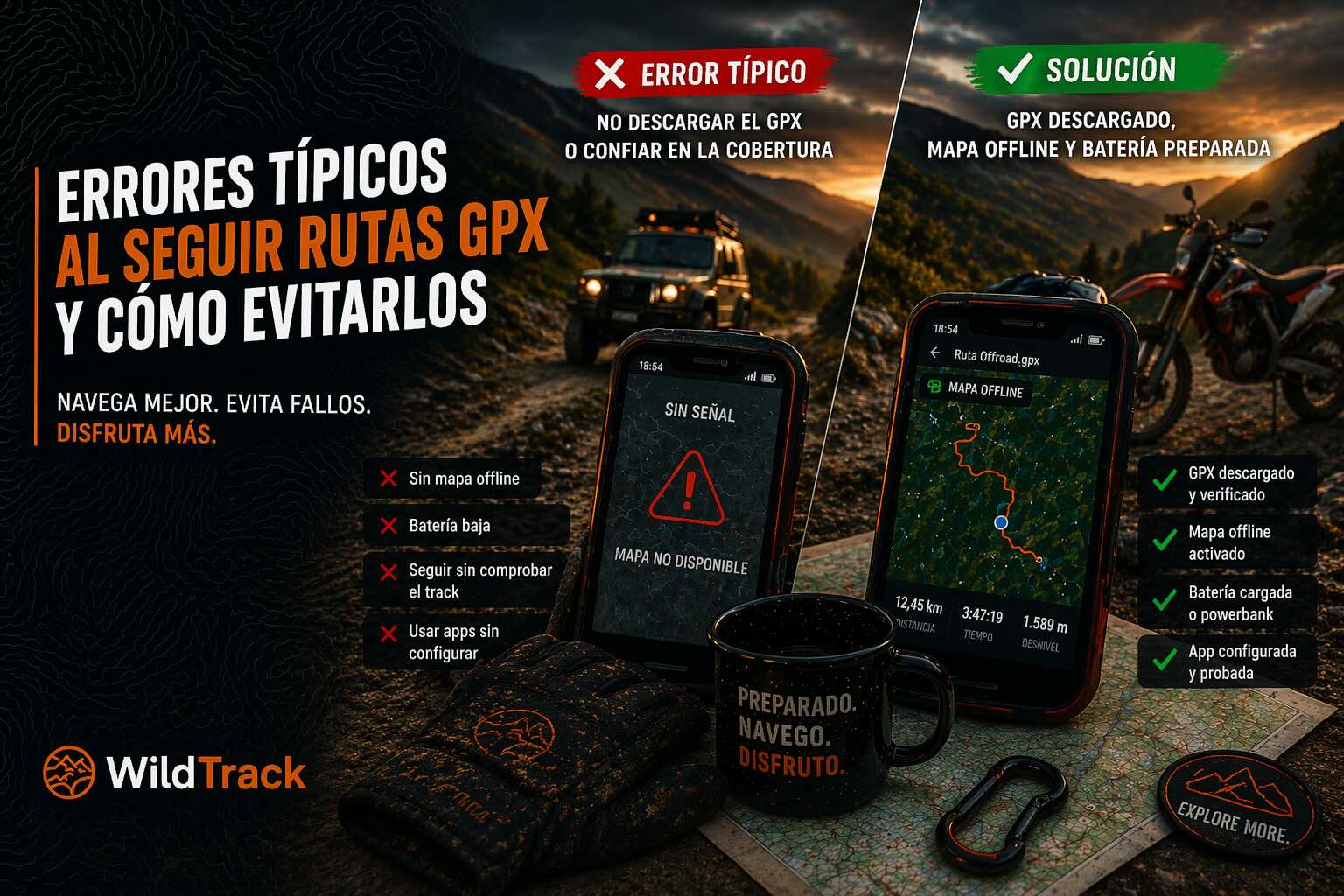 Cargar un track GPX en el móvil y salir a rodar parece sencillo. Pero la realidad es que la mayoría de los problemas en ruta no vienen del terreno, sino de errores que cometemos antes de arrancar la moto o el 4x4.